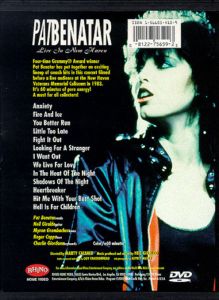 Four-time Grammy Award winner Pat Benatar has put together an exciting lineup of smash hits in this concert filmed before a live audience at the New Haven Veterans Memorial coliseum in 1983. It’s 60 minutes of pure energy! A must for all collectors! Songs Include: 1. Anxiety 2. Fire And Ice 3. You Better Run 4. Little Too Late 5. Fight It Out 6. Looking For A Stranger 7. I Want Out 8. We Live For Love 9. In The Heat Of The Night 10. Shadows Of The Night 11. Heartbreaker 12. Hit Me With Your Best Shot 13. Hell Is For Children |
