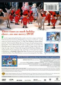From the magicmaking Rankin/Bass studios come three unique and beloved Yuletide favorites boasting delightful stop-motion animation, catchy songs and family-pleasing stories. In The Year Without A Santa Claus, weary St. Nick (voiced by Mickey Rooney) foregoes his gift-giving journey, leaving Mrs. Claus (Shirley Booth) and two spunky elves to reawaken the Christmas spirit in Santa and the world's children. Roger Miller tells and sings the saga of gentle Nestor the Long-Eared Christmas Donkey, an outcast chosen for an important task: escorting a certain expectant couple to Bethlehem. In Rudolph's Shiny New Year, the brave red-nosed reindeer is drafted by Father Time (Red Skelton) to recover the missing New Year Baby. |