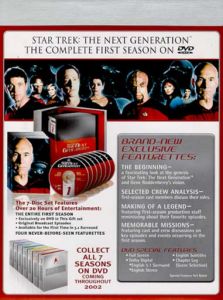 The Beginning - A fascinating look at the genesis of Star Trek: The Next Generation™ and Gene Roddenberry's vision Selected Crew Analysis - First-season cast members discuss their roles Making Of A Legend - Featuring first-season production staff reminisching about their favorite episodes Memorable Missions - Featuring cast and crew discussions on key episodes and events occurring in the first season Chapter Log (Scene Selection)