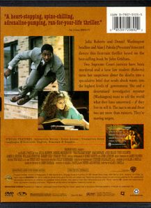 Two Supreme Court justices have been murdered and a lone law student (Roberts) turns her suspicions about the deaths into a speculative brief that sends shock waves into the highest levels of government. She and a determined investigative reporter (Washington) want to tell the world what they have uncovered if they live to tell it. The race is on and these two are more than runners. They're moving targets. |