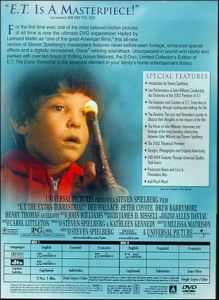 Introduction by Steven Spielberg Live Performances of John Williams Conducting the Orchestra at the 2002 Premiere of E.T. The Evolution and Creation of E.T.: From idea to screenplay, through casting and making the film. The Reunion: The cast and filmmakers reunite to discuss their thoughts on the impact of the film The Music of John Williams: Interviews and footage of the long standing relationship between John Williams and Steven Spielberg The 2002 Theatrical Premiere Designs, Photographs and Original Advertising DVD-ROM Features Through Universal Studios Total Axess Production Notes Cast and Filmmaker's Bios And Much More!