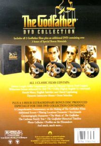 The Godfather DVD Collection Includes: The Godfather - Francis Ford Coppola's epic masterpiece features Marlon Brando in his Oscar®-winning role as the patriarch of the Corleones. This is a chilling portrait of the Sicilian clan's rise and near fall from power in America balanced between the Corleone's family life and the crime business in which they are engaged.