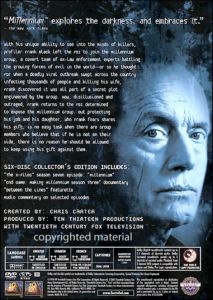 Commentary on Select Episodes X-Files "Millennium" Episode from Season 7 Between The Lines Featurette End Game: Making Millennium Season Three Documentary |