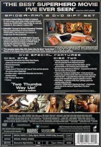 Exclusive Limited Edition Portfolio of Artwork: 25 well-known comic book artists created artwork inspired by SPIDER-MAN 2 specifically for, and only available in, this collector's edition DVD Collectible "Concept to Screen Comparison" Portfolio: View the transformation of various scenes of SPIDER-MAN 2 from sketches and concepts to images from the final production Postcard Collection of SPIDER-MAN 2 Artwork: 5 postcards featuring original artwork used in the theatrical advertising campaign of SPIDER-MAN 2 including the well-know trilogy campaign of "sacrifice," "Choice" and "Destiny" "The Amazing Spider-Man #50, Spider-Man No More" Comic Book Reprint of the original comic book in which Peter Parker decides to give up being Spider-Man