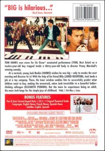 Tom Hanks won raves for his Oscar nominated performance (1988, Best Actor) as a twelve-year old boy trapped inside a thirty year old body in director Penny Marshall's winning comedy.