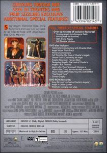DVD Also Includes: Telestrator Commentary With Director McG Angel-Vision Trivia Track Writer's Commentary Full Throttle: The Cars of Charlie's Angels Dream Duds: Costuming An Angel Angels Makeover: Hansen Dam Designing Angels: The Look Of Charlie's Angels: Full Throttle Learn Why: There's No Such Thing As a "Short Shot", Only An Overworked Producer Music Video: Pink Featuring William Orbit "Feel Good Time" Cameo-Graphy