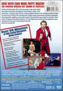 Over 35 Minutes of Hilarious Bloopers & Deleted Scenes Ron Burgundy's Unforgettable Interviews at the MTV Movie Awards Ron Burgundy's ESPN Auditions An Interview with Ron Burgundy Courtesy of the Museum of Television and Radio An Almost Uncensored Commentary With Will Ferrell and Director Adam McKay The Making of Anchorman "Afternoon Delight" Music Video