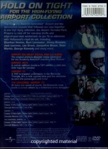 The Academy Award-nominated Airport and the sensational sequels that followed are now together in one high flying collection, the Airport Terminal Pack. Prepare to take off for non-stop thrills and edge-of-your-seat excitement as you fly to extremes with Hollywood's royal jet set including: Charlton Heston, Burt Lancaster, Jimmy Stewart, Jack Lemmon, Lee Grant, Jacqueline Bisset, Dean Martin, George Kennedy and many more.
