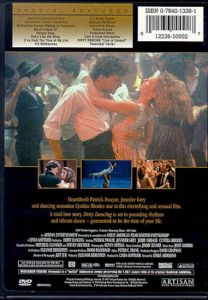 Commentary from the creator of Dirty Dancing Eleanor Bergstein Music Videos of: Hungry Eyes, She's Like The Wind, and The Time Of My Life Dirty Dancing Live In Concert Cast And Crew Information Production Notes Scene Access Interactive Menus Behind-the-Scenes Making of Featurette Theatrical Trailer |