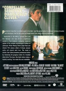 Psychiatrist Isaac Barr is a noted expert in this field - and the perfect patsy in a devious scheme of murder and inheritance. And his fall could be straight down from atop a towering lighthouse. Handcuffed in No Mercy, Richard Gere and Kim Basinger now face off on a lighthouse catwalk in Final Analysis, a gripping, masterful update of the complex psychological thrillers of yesteryear. |
