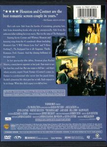 In her spectacular film debut, Houston plays Rachel Marron, a music/movie superstar at her peak. Fans want to see her, hear her, touch her. But one wants to kill her--and that's where security expert Frank Farmer (Costner) comes in. Farmer is a professional who never lets his guard down. Rachel's glamorous life often puts her at risk. Each expects to be in charge. What they don't expect is to fall in love. |