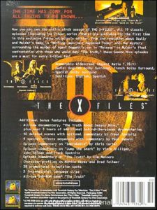 All-New Documentary, "The Truth About Season Nine," Plus Over 3 Hours of Additional Behind-the-Scenes Documentaries 10 Deleted Scenes with Optional Commentary by Frank Spotnitz 9 Special Effects Sequences with Commentary by Paul Rabwin Episode Commentary on "Improbable" by Chris Carter Episode Commentary on "Jump the Shark" by Vince Gilligan, John Shiban and Frank Spotnitz Episode Commentary on "The Truth" by Kim Manners Character Profiles on Monica Reyes and Brad Follmer 38 Promotional Television Spots 5 International Language Clips All-New DVD-ROM Game "The Truth"