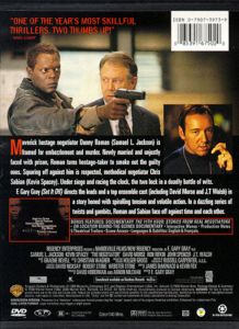 Maverick hostage negotiator Danny Roman (Samuel L. Jackson) is framed for embezzlement and murder. Newly married and unjustly faced with prison, Roman turns hostage-taker to smoke out the guilty ones. Squaring off against him is respected, methodical negotiator Chris Sabian (Kevin Spacey). Under siege and racing the clock, the two lock in a deadly battle of wits. |