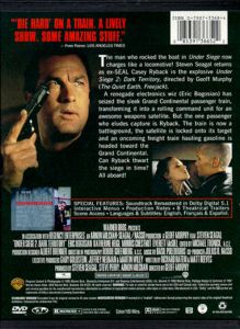 The man who rocked the boat in Under Siege now charges like a locomotive! Steven Seagal returns as ex-Seal Casey Ryback in the explosive Under Siege 2: Dark Territory, directed by Geoff Murphy (The Quiet Earth, Freejack). A renegade electronics wiz (Eric Bogosian) has seized the sleek Grand Continental passenger train, transforming it into a rolling command unit for an awesome weapons satellite. But the one passenger who eludes capture is Ryback. The train is now a battleground, the satellite is locked onto its target & an oncoming freight train hauling gasoline is headed toward the Grand Continental. Can Ryback thwart the siege in time? All aboard!! |