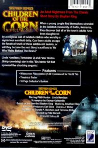 When a young couple finds themselves stranded in the isolated community of Gatlin, Nebraska, they discover that all of the town's adults have been slaughtered by a religious cult of twisted children who worship a mysterious cornfield deity. Can these adults escape the fanatical wrath of these adolescent zealots, or will they become the next blood sacrifices to 'He Who Walks Behind The Rows?'