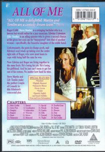 Roger Cobb (Steve Martin) is a swinging bachelor who is a lawyer but would rather be a jazz musician. Edwina Cutwaters (Lily Tomlin) is an ailing spinster who is given a second chance at life given her soul can be "transported" into that of another woman-specifically, the beautiful daughter of the stable hand. Unfortunately, the guru-in-charge goof, and Edwina's soul winds up taking over the entire right side of Roger, who now must learn to cope with being half the man he was. Now Edwina and Roger are living together in the same body. He's losing his job. He's losing his girlfriend. And he just can't seem to get her out of his system. No matter how hard he tries. |