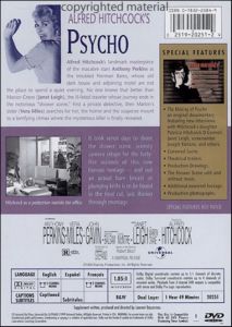 Interactive Menu Scene Access Theatrical Trailers Censored Scenes Production notes The Shower Scene With or Without Music Additional Newsreel Footage Production Photographs Much, much more! |