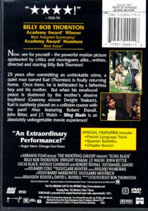 Now, see for yourself- the powerful motion picture applauded by critics and moviegoers alike… written, directed and starring Billy Bob Thorton! 25 years after commiting an unthinkable crime, a quiet man named Karl is finally returning home. Once there, he is befriended by a fatherless boy and his mother. But when his newfound peace is shattered by the mother's abusive boyfriend, Karl is suddenly placed on a collision course with his past! Also featuring Robert DuVall, John Ritter, and J.T. Walsh- Sling Blade is an absolutely unforgettable movie experience! |