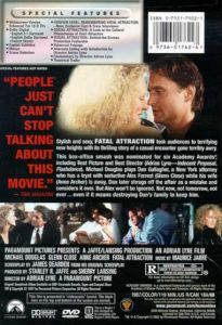 Menus Scene Selection Forever Fatal: Remembering Fatal Attraction: New, Exclusive Cast & Crew Interviews Social Attraction: A Look At The Cultural Phenomenon Of Fatal Attraction Visual Attraction: Behind-The-Scenes Production Featurette Rehearsal Footage Alternate Ending with Introduction by Director Adrian Lyne Commentary by Director Adrian Lyne Theatrical Trailer