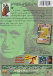 The producers are pleased to present this holiday classic, fully restored and re-mastered from the original 35mm negative discovered in England. Some of Britain's best filmmakers united to produce one of England's greatest classics in this, the most well-known and critically acclaimed version of Charles Dickens' timeless tale. With an authentic, dramatic script by later-director Noel Langley, a superb performance by Alastair Sim and company, and under the careful direction of Brian Desmond Hurst, the 1951 filmed version of A Christmas Carol emerges as an outstanding cinematic presentation. Released in the U.S. by United Artists. |