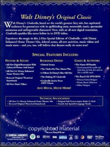 Experience the magic in this 2-Disc Special Edition of Cinderella - with Disney Enhanced Home Theater Mix, deleted scenes, all-new activities, music videos and much more - and you, too, will believe that dreams really do come true! |