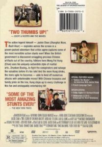 The action legend himself -- Jackie Chan (Shanghai Noon, Rush Hour) -- explodes across the screen in a power-packed adventure that critics agree captures some of the most incredible action stunts ever! When the British government is discovered smuggling precious Chinese artifacts out of the country, folklore hero Wong Fei Hong (Chan) uses his uniquely outlandish style of martial arts…Drunken Boxing…to fight the conspirators and salvage the valuables before it's too late! And the more Hong drinks, the more agile he becomes -- able to fend off numerous attacks with unbelievable moves! With Chinese treasures and family pride on the line, Hong steps up to every challenge in this fun and unstoppable entertaining hit! |