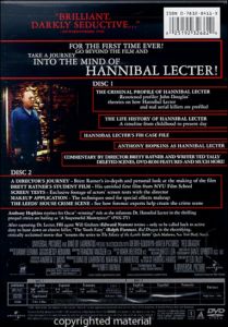 Disc One The Criminal Profile of Hannibal Lector: Renowned Profiler John Douglas' Theories on How Hannibal Lector and Real Serial Killers are Profiled.