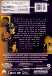 | The definitive version of Francis Ford Coppola's stunning vision of the heart of darkness in all of us, re-edited and remastered with 49 minutes of additional footage. Nominated for 8 Academy Awards®, this classic and compelling Vietnam War epic stars Martin Sheen as Army Lieutenant Willard, who is sent on a dangerous and mesmerizing odyssey into Cambodia to assassinate a renegade American Colonel named Kurtz (Marlon Brando), who has succumbed to the horrors of war and barricaded himself in a remote outpost. |