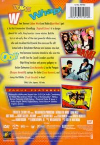 Armed with a dehydrator that can turn humans into dust, the fearsome foursome intends to take over the world! Can the Caped Crusaders use their high-flying heroism and groovy gadgetry to declaw Catwoman (Lee Meriwether), ice the Penguin (Burgess Meredith), upstage the Joker (Cesar Romero), and stump the Riddler (Frank Gorshin) in time? |