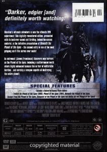 Includes a Behind-the-Scenes Photo Gallery Trailers for Planet of the Apes (1968), Planet of the Apes (2001), Beneath the Planet of the Apes, Escape from the Planet of the Apes, Conquest of the Planet of the Apes and Battle for the Planet of the Apes! |