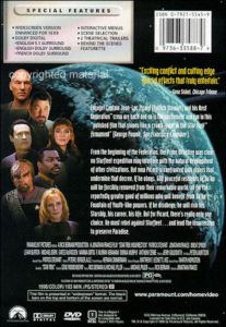 From the beginning of the Federation, the Prime Directive was clear: no Starfleet expedition may interfere with the natural development of other civilizations. But now Picard is confronted with orders that undermine that decree. If he obeys, 600 peaceful residents of Ba'ku will be forcibly removed from their remarkable world. All for the reportedly greater good of millions who will benefit from Ba'ku's Fountain of Youth-like powers. If he disobeys, he will risk his Starship, his career, his life. But for Picard, there's really only one choice. He must rebel against Starfleet…and lead the insurrection to preserve Paradise. |