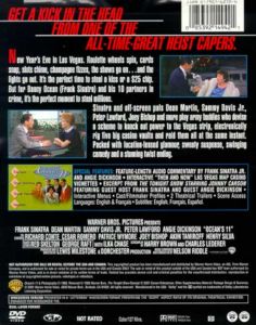 New Year's Eve in Las Vegas. Roulette wheels spin, cards snap, slots chime, champagne fizzes, the shows go on…and the lights go out. It's the perfect time to steal a kiss or a $25 chip. But for Danny Ocean (Frank Sinatra) and his 10 partners in crime, it's the perfect moment to steal millions.