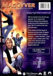 With his inventive mind and nice-guy approach, it's no mystery that MacGyver (Richard Dean Anderson) always pulls off the assignment he's given. But TV's favorite action hero isn't quite done... In the seventh and final season of MacGyver, our hero faces off against criminals with the most outrageous schemes - nuclear terrorists...a mad arsonist...even a voodoo priest! Plus a time-travel adventure and an emotional series finale with the biggest surprise yet! |