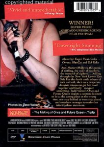 | Anti-Matter (Philly) is the queen of nothing, the ruler of nowhere, the monarch of ciphers... Drifting through the New York Lower East Side like the death rattle echoes of rock and roll, she's on a desperate, desolate mission to get her band together and finally conquer something. Todd Verow's Once And Future Queen depicts a woman destined to be at the wrong place at the wrong time, one step behind or two steps ahead, and somehow manages to make that into a fashion statement. |