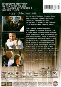 At the end of Season 5, Jack Bauer was kidnapped, beaten, and taken captive in retribution for his involvement in a raid on the Chinese Consulate eighteen months earlier. Now, there’s a new president, Jack Bauer is missing, and the U.S. is under siege from terrorist attacks more threatening than anything we’ve ever encountered! There is only one thing that can save the nation - Jack Bauer must die. Get ready for the most explosive, the most terrifying, the most heart-pounding four hours of television ever. Included on this exclusive DVD are the first four hours of Season 6 - 6:00 a.m. to 10:00 a.m. - and a never-before-seen 12-minute preview of the next explosive episode. And you thought your rush hour was tense... |