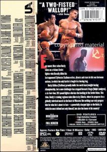 East meets West when Rocky takes on vicious Soviet fighter who literally killed his last opponent! Sylvester Stallone writes, directs and stars in this war between nations, in which the only battle is in a boxing ring.