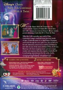 | What if the slipper didn’t fit? Experience the wonder and the majesty of Cinderella’s classic fairy tale with a spectacular twist in Disney’s all-new motion picture Cinderella III: A Twist In Time. When her evil stepmother gets hold of the Fairy Godmother’s magic wand and turns back the hands of time, Cinderella must try to find Prince Charming and break through the evil spell. Gus, Jaq and all your favorite characters return in an exciting and hilarious new take on one of the most celebrated films of all time. Bursting with show-stopping music and more magic, wonder and suspense than the original, Cinderella III is enchanting entertainment for the entire family. |