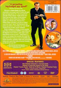 Welcome to Casino Royale, the ultimate psychedelic secret agent satire! Packed with girls, guns and gags galore, this "very funny picture" (The New Yorker) delivers "laughs all the way" (Cue)! Starring Peter Sellers, Ursula Andress, David Niven, Joanna Pettet, Orson Welles, Daliah Lavi, Woody Allen, Deborah Kerr, William Holden, and others, and with an original score from Oscar winner Burt Bacharach, this groovy spy movie is "even farther out" (L.A. Herald Examiner) than all other spoofs combined.