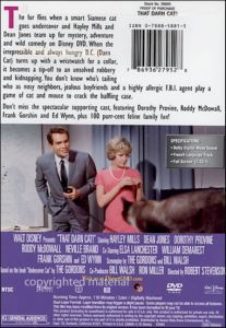 The fur flies when a smart Siamese cat goes undercover and Hayley Mills and Dean Joes team up for mystery, adventure and wild comedy on Disney DVD. When the irrepressible and always hungry D.C. (Darn Cat) turns up with a wristwatch for a collar, it becomes a tip-off to an unsolved robbery and kidnapping. You don’t know who's tailing who as nosy neighbors, jealous boyfriends and a highly allergic F.B.I. agent play a game of cat and mouse to crack the baffling case.