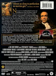 Now seen in a revitalized digital transfer and including more than 20 minutes worth of scenes not seen in its original release, Amadeus remains a screen triumph: as sumptuous period epic, soaring celebration of the music of Wolfgang Amadeus Mozart, a Top 100 Films selection by the American Film Institute and as the winner of eight 1984 Academy Awards, including Best Picture (produced by Saul Zaentz), Actor (F. Murray Abraham), Director (Milos Forman) and Adapted Screenplay (Peter Shaffer, from his play).