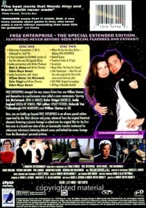 Disc 2 Where No Fan Has Gone Before: Making Free Enterprise Deleted Scenes Theatrical Trailer TV Spot Screentests Music Video "No Tears For Caesar" Café Fantastique: Meet the real fans who inspired the film in this never aired television pilot DVD Rom: Original Screenplays 20 Page Collectible Booklet