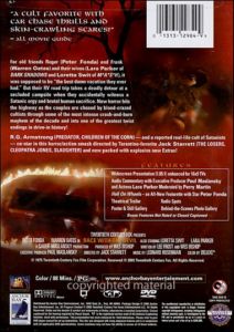For old friends Roger (Peter Fonda) and Frank (Warren Oates) and their wives (Lara Parker of Dark Shadows and Loretta Swit of M*A*S*H), it was supposed to be "the best damn vacation they ever had." But their RV road trip takes a deadly detour at a secluded campsite when they accidentally witness a Satanic orgy and brutal human sacrifice. Now horror hits the highway as the couples are chased by blood-crazed cultists through some of the most intense crash-and-burn mayhem of the decade and into one of the greatest twist endings in drive-in history.