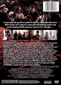 Another massive 10.5 quake tears apart the West Coast, threatening to turn the American landscape into a hellish wasteland. Seismologist Samantha Hill (Emmy® winner Kim Delaney, TV's CSI: Miami) sees an even greater threat: an ever-widening fault line that's heading straight for the country's two largest nuclear reactors. If meltdown occurs, millions will die. Samantha and the American president (Emmy® and Golden Globe® winner Beau Bridges, TV's Stargate SG-1 agree only one man can help them - the scientist who predicted this terrifying natural disaster years before - Samantha's own father, Dr. Earl Hill (Golden Globe® nominee Frank Langella, Good Night, and Good Luck.), now counted as a possible casualty of a massive Las Vegas quake. Together with a crack rescue team including Brad (Dean Cain, Mayday) and Will (Oliver Hudson, The Out-of-Towners), Samantha must find her father and stop the fault from slicing uncontrollably toward millions of people and the ultimate nuclear apocalypse. |