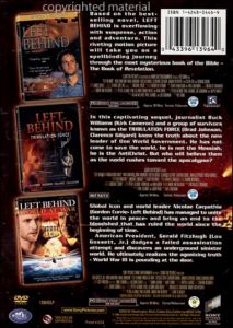 Left Behind: World At War What Doesn't Kill You...Technical Making Of Characters with Character - Featurette GCN News Report by Buck Williams Featurette The Way of the Master Featurette Bloopers and Outtakes Audio Commentary Deleted Scenes Music Videos Cast & Crew Bios Bonus Previews |