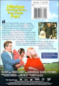 Henry Dussard (Dean Jones), a young American, inherits a picturesque but badly neglected olive farm in southern France and is determined to make it operational again despite cautionary advice from the local priest (Maurice Chevalier) and a pretty villager (Yvette Mimieux). Desperate for laborers, the inventive Dussard turns to the zaniest crew of olive pickers ever recruited…four mischievous monkeys! As former members of an Air Force space team, these intelligent chimps quickly pick up on their new responsibilities… but prove to have a turbulent effect on the local townspeople. Endless hilarity results in this slapstick family comedy! |