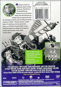 Medfield's lovable but hopelessly absent-minded professor, Ned Brainard (Fred MacMurray), bounces back in this classic Disney film with hilarious new mishaps when he experiments with the amazing by-products of his startling anti-gravity substance, "flubber." Windows shatter, football players fly and thunderstorm materialize indoors as Professor Brainard fights to keep Medfield College from falling into the hands of ruthless land developer Alonzo hawk (Keenan Wynn). |