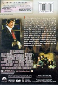 | In this explosive story of revenge and urban violence, Charles Bronson plays Paul Kersey, a bleeding-heart liberal who has a change of opinion after his wife and daughter are violently attacked by a gang of thugs in their apartment. His daughter is raped, and his wife is raped and murdered. Bronson then turns vigilante as he stalks the mean streets of New York on the prowl for muggers, hoodlums and the like. Death Wish is a violent, controversial film that is frank and original in its treatment of urban crime and the average citizen's helplessness in dealing with it. Herbie Hancock wrote the musical score. And watch for a young Jeff Goldblum in his film debut as one of the thugs. |