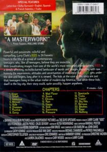 | Powerful and passionate, colorful and compelling, Larry Clark's Kids is 24 frenetic hours in the life of a group of contemporary teenagers who, like all teenagers, believe they are invincible. With breathtaking images from one of the world's most renowned photographers, Kids is a deeply affecting, no-holds-barred landscape of words and images, depicting with raw honesty and experiences, attitudes and uncertainties of innocence lost. Kids gets under the skin and lingers, long after it is viewed. The kids at the core of the story are just that: teenagers living in the urban melee of modern-day America. But while these kids dwell in the big city, their story could, quite possibly, happen anywhere. |