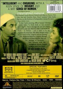 In this "vastly amusing, offbeat fantasy" (Variety), Sayles takes "a fresh look at our society" (Los Angeles Times) through the eyes of a black extraterrestrial (Joe Morton) who crash-lands on Earth - in Harlem - and is taken in by the regulars of a local bar. The alien changes everyone he meets on his "original and eye-opening" (The Hollywood Reporter) journey through the streets of Urban America. btu can his message of brotherly love resonate with the intergalactic bounty hunters trying to track him down? |