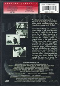 Maximilian Cohen is on the verge of the most important discovery of his life. For the past ten years, he has been attempting to decode the numerical pattern beneath the ultimate system of ordered chaos--the stock market. As Max verges on a solution, chaos is swallowing the world around him. Pursued by an aggressive Wall Street firm set on financial domination and a Kaballah sect intent on unlocking the secrets behind their ancient holy texts, Max races to crack the code, hoping to defy the madness that looms before him. Instead, he uncovers a secret for which everyone is willing to kill. |